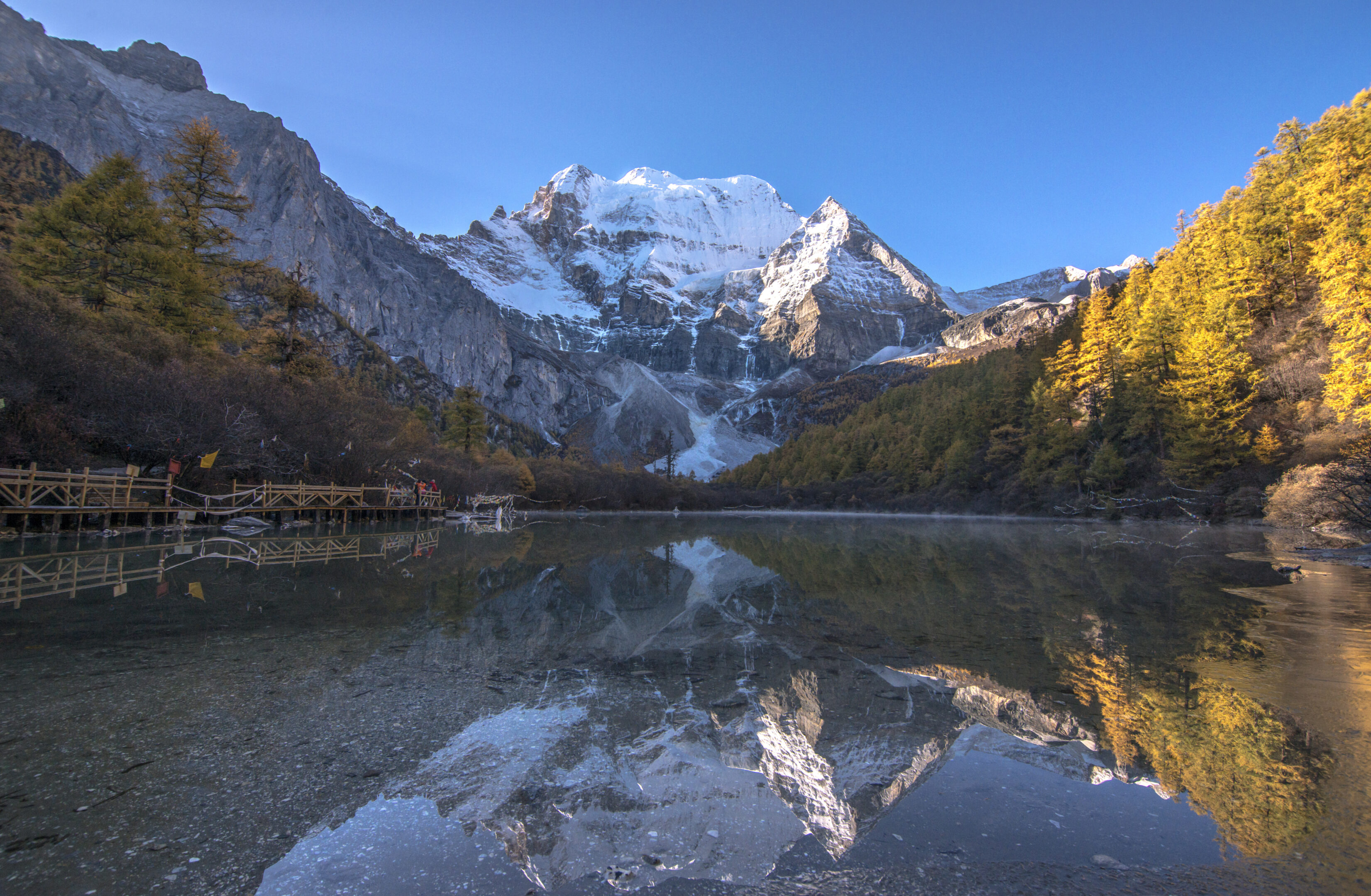 拍攝完畢後可 返回沖古寺或洛絨牛場一帶地區,拍攝亞丁自然景區迷人秋意,大景小品,各有特色,團友可自由發揮攝影觸覺,拍攝心滿意足之攝影作品,亦可慢步山林中,欣賞景區面貌。